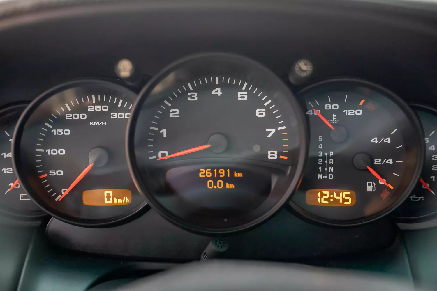 Dem digitalen Tachometer sind 26.191 Kilometer abzulesen: Diese Gesamtlaufleistung ist durch ein durchgehend geführtes originales Porsche Scheckheft belegbar, zudem wurde dieser 4S laut Aussagen des Verkäufers stets in einem Porsche Zentrum gewartet.