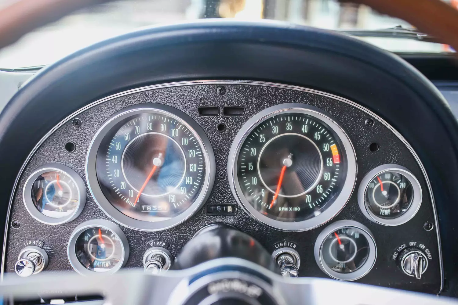 Wann und wo wurde die Corvette denn restauriert? Frame on oder frame off? Wie lange ist sie schon in Ihrem Eigentum? Uhr funktioniert nicht, oder? Warum wurde vorne nachlackiert? Was funktioniert ansonsten nicht?