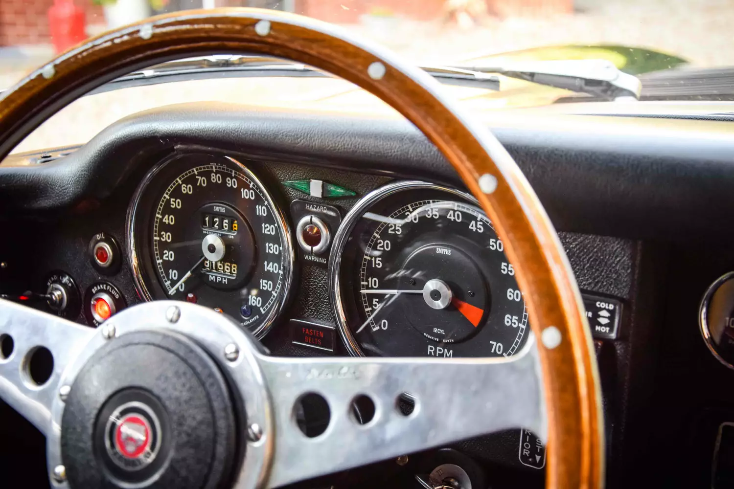 Die Instrumente des E-Type sind nahezu vollständig funktionstüchtig. Lediglich die Instrumente der Klimaanlage seien mangelbehaftet, so der Besitzer. Die Laufleistung kann mit ca. 81.700 mi abgelesen werden, was ca. 131.500 km entspricht.