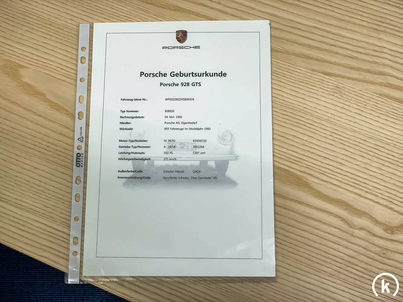 Diverse Dokumente, sowie die Geburtsurkunde liegen selbstverständlich bei und runden dieses tolle Angebot vom 928 GTS ab.