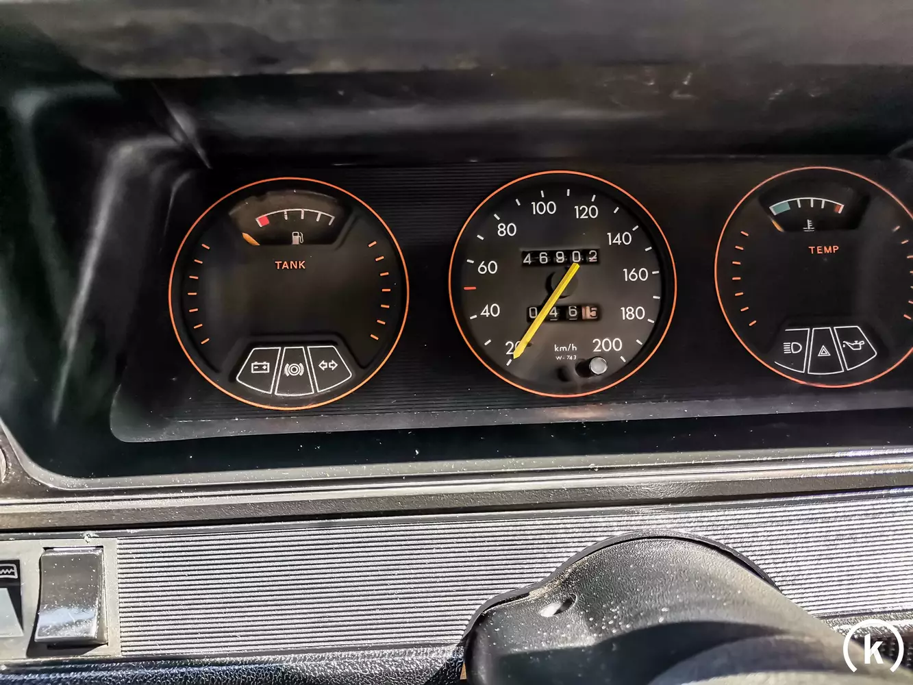 Auf dem Tacho können ca. 46.900Km abgelesen werden, die aber nicht vollständig nachvollziehbar sind, da hierfür Belege und Nachweise fehlen und die Historie nicht mehr. Anhand des allgemeinen Zustandes, könnte der Kilometerstand aber durchaus glaubhaft sein, da auch die Instrumente und der Innenraum äußerst gepflegt sind.