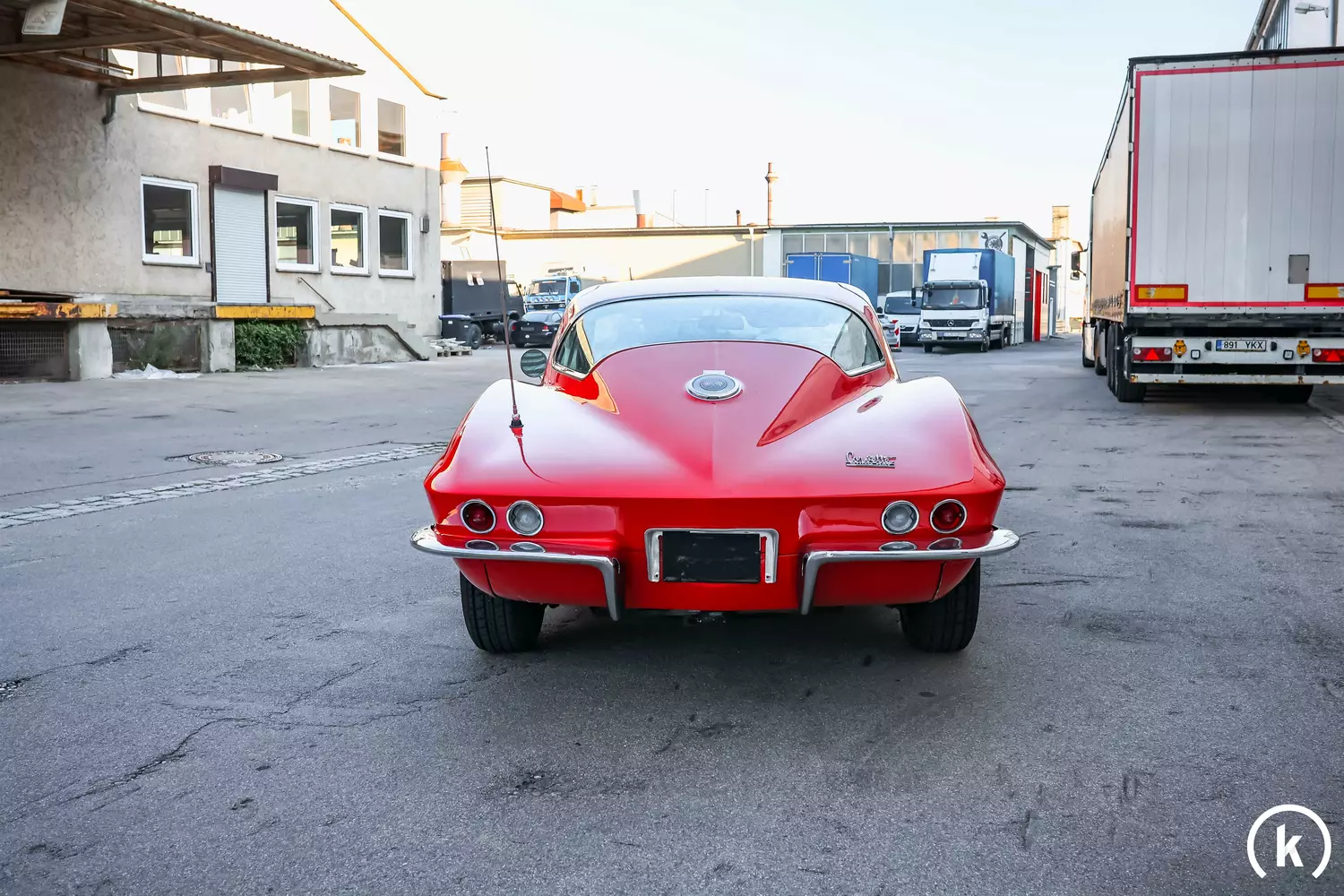 Markant und unverwechselbar präsentiert sich die in diesem Falle in Rot lackierte Karosserieform der Sting Ray. Der momentane Besitzer lässt erwähnen, dass die Corvette an den Stoßstangenecken kleine Dellen aufweist und der Lack auf der Motorhaube über ein paar minimale Bläschen verfügt. Eine Nachlackierung der Karosserie fand schonmal vor Jahren in den USA statt, einen Unfall schließt der Verkäufer gänzlich aus. In glänzender Verfassung sind sämtliche Chromelemente an der C2 erhalten, Fehlteile oder Modifikationen am Exterieur sind augenscheinlich nicht aufzuzählen. Auffallend geben sich definitiv die originalen 327er Sidepipes, welche für eine einmalige Soundkulisse sorgen.