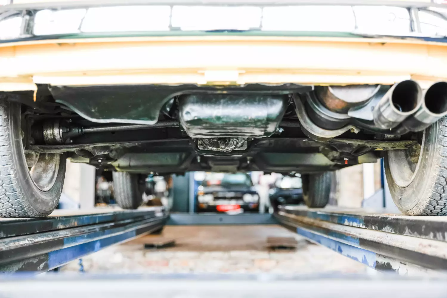 Dem Unterboden ist ein kerngesunder und sehr gut restaurierter Zustand zu entnehmen: Dieser wurde reichlich mit schwarzem Unterbodenschutz versiegelt.