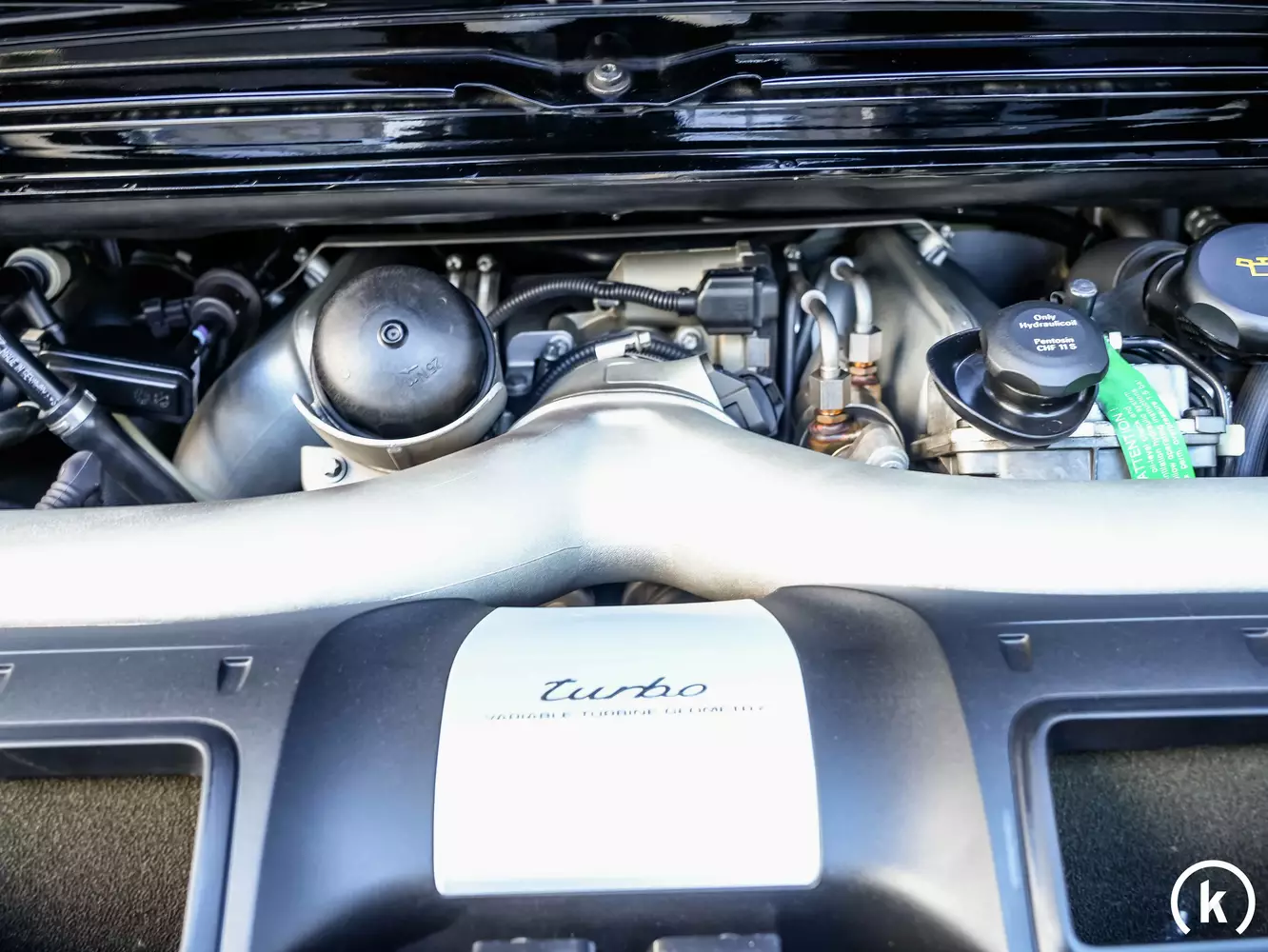 Sehr gut vom Erhaltungszustand her präsentiert sich der Unterboden dieses Porsche. Mit dem 997 Turbo begann Porsche, die Qualitäten der Vorgängerserie bestmöglich weiterzuentwickeln: 480 Biturbo-PS und eine Höchstgeschwindigkeit von über 310 Km/h für das Turbo-Coupé sprechen auch heute noch für sich. Mit diesem in dezentem Schwarz gehaltenen 997 Turbo ist ein stilsicheres Auftreten sicher. Der sehr gute Allgemeinzustand und die reichhaltige Ausstattung stehen auf der Habenseite dieses Porsche. Außerdem ist er für Sammler äußerst interessant, da er kein Schiebedach und Heckscheibenwischer hat.