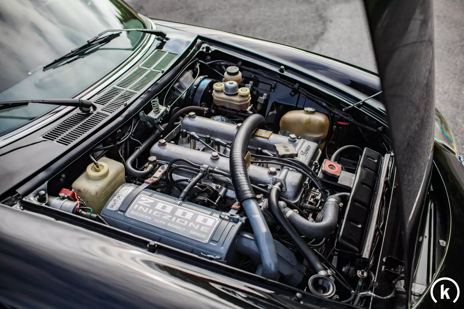 Das schicke Cabrio wurde 1978 in schwarzer Lackierung von Alfa Romeo ausgeliefert und diese in der Vergangenheit im originalen Farbton aufwendig erneuert. An der Karosserie des unfallfreien Fahrzeuges sind deshalb keine Mängel oder Anzeichen von Korrosion festzustellen. Im Zuge der Restauration des Alfa Romeo Spider wurde zusätzlich das in die Jahre gekommene Verdeck ausgetauscht, die Frontscheibe ersetzt und Stoßfänger nach europäischem Vorbild integriert.