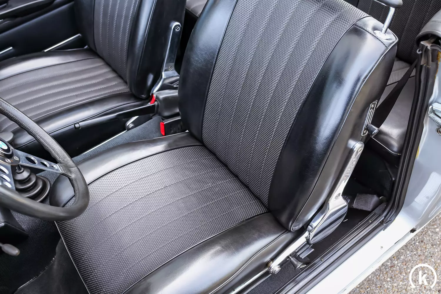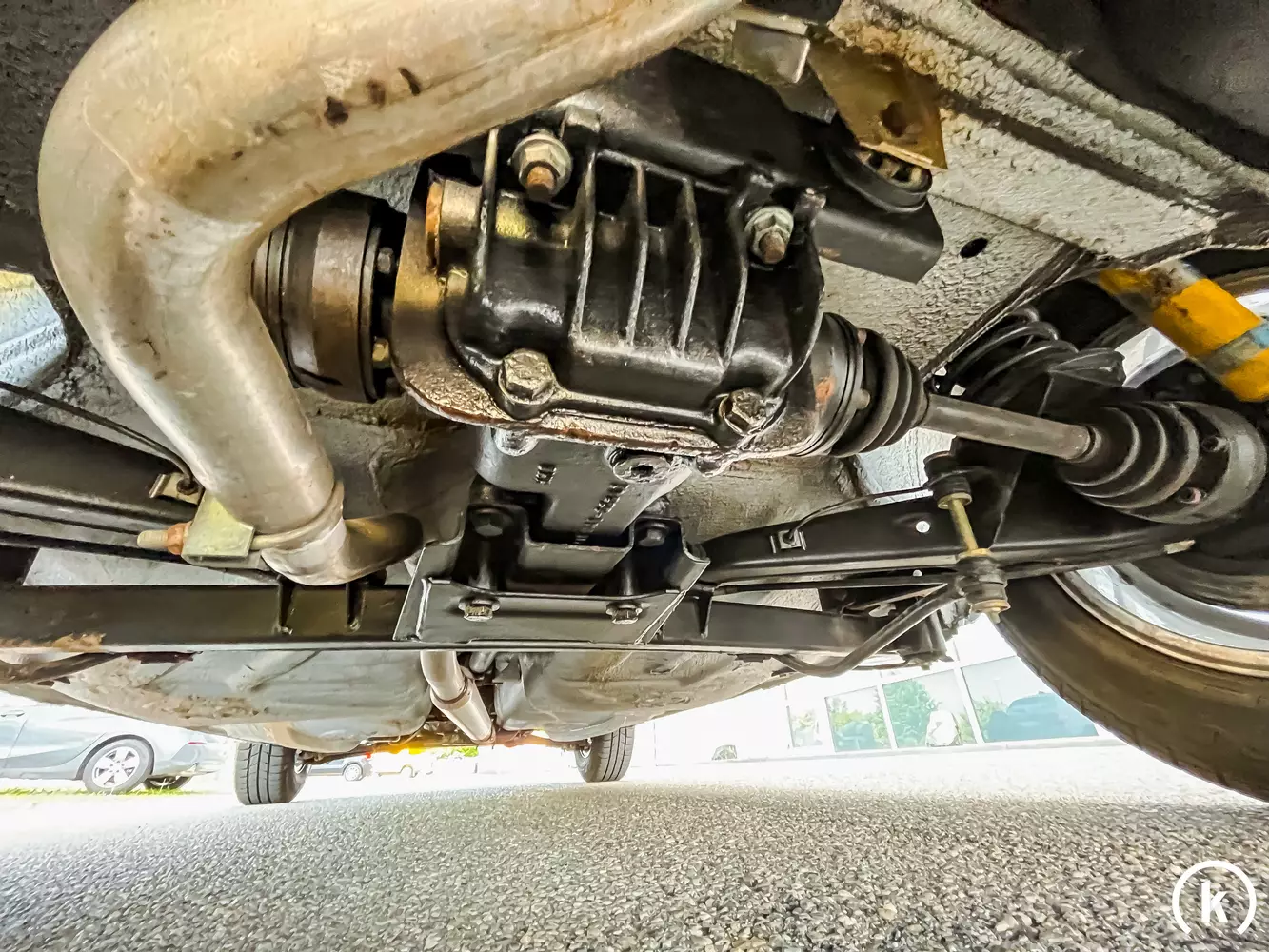 Aufgeräumt geht es im Motorraum zu: Eine Domstrebe sorgt für mehr Karosseriesteifigkeit, der 2,0-Liter Reihenvierzylinder sorgt für eine Leistung von 101 PS. Über ein 4-Gang Handschaltgetriebe wird die Kraft über die Hinterräder auf die Straße gebracht. Ein Service fand erst vor kurzem statt – Mängel im Antriebsstrang sind nicht aufzuzählen. Laut Verkäuferangaben bestehen keinerlei offene Arbeiten.