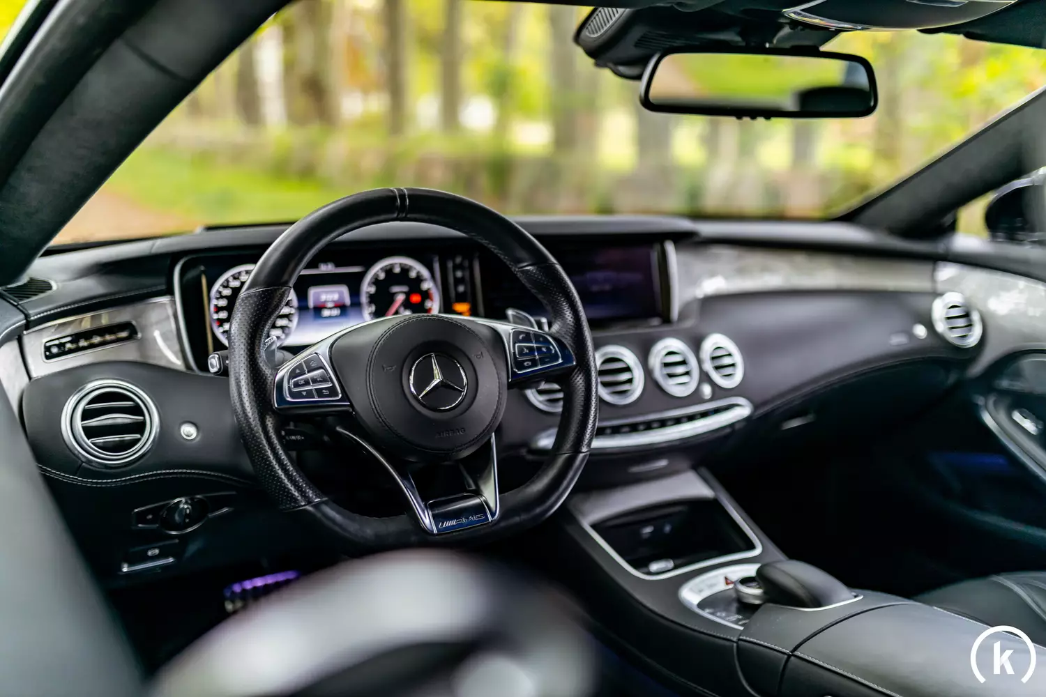 Reichlich Luxus und Komfort kann dem in schwarz gehaltenen Interieur dieses Mercedes-Benz entnommen werden: Weder die Vollledersitze noch das Lederlenkrad zeigen sich abgenützt. – Auch dem restlichen Innenraum kann ein ausgesprochen guterhaltener sowie gepflegter Zustand entnommen werden. Überaus reichhaltig präsentiert sich die Ausstattung dieses S 500 AMG-Line. Unter anderem befinden sich folgende Ausstattungselemente an Bord dieses S-Klasse Coupés: Abstandstempomat, Abstandswarner, Adaptives Kurvenlicht, Alarmanlage, Ambiente-Beleuchtung, Android Auto, Apple CarPlay, Beheizbares Lenkrad, Berganfahrtassistent, Bluetooth, Freisprecheinrichtung, Geschwindigkeitsbegrenzer, Head-Up Display, Isofix, LED-Scheinwerfer, LED-Tagfahrlicht, Lichtsensor, Lordosenstütze, Massagesitze, Müdigkeitswarner, Multifunktionslenkrad, Musikstreaming integriert, Nachtsicht-Assistent, Navigationssystem, Notrufsystem, Panoramadach, Regensensor, Reifendruckkontrolle, Schaltwippen, Sprachsteuerung, Schlüssellose Zentralverriegelung, Sitzbelüftung, Sitzheizung, Soundsystem, Start/Stopp-Automatik, Spurhalteassistent, Standheizung, Totwinkel-Assistent, Windowbags, Verkehrszeichenerkennung.