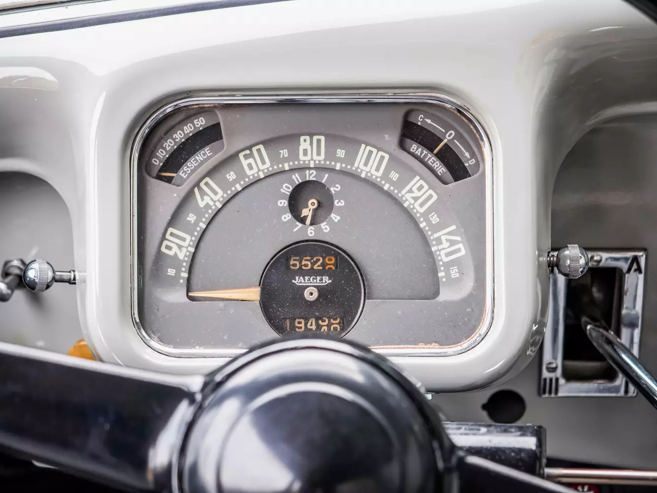 Neu zeigen sich auch die Instrumente im CV11: Sie weisen allesamt eine einwandfreie Funktion auf, dem Tachometer sind 19.439 Kilometer abzulesen, eine Historie liegt keine mehr vor, jedoch ist der Citroën rundum restauriert worden, womit der zukünftige Besitzer sorglos die nächsten Jahrzehnte mit diesem Wagen unter die Räder nehmen kann.
