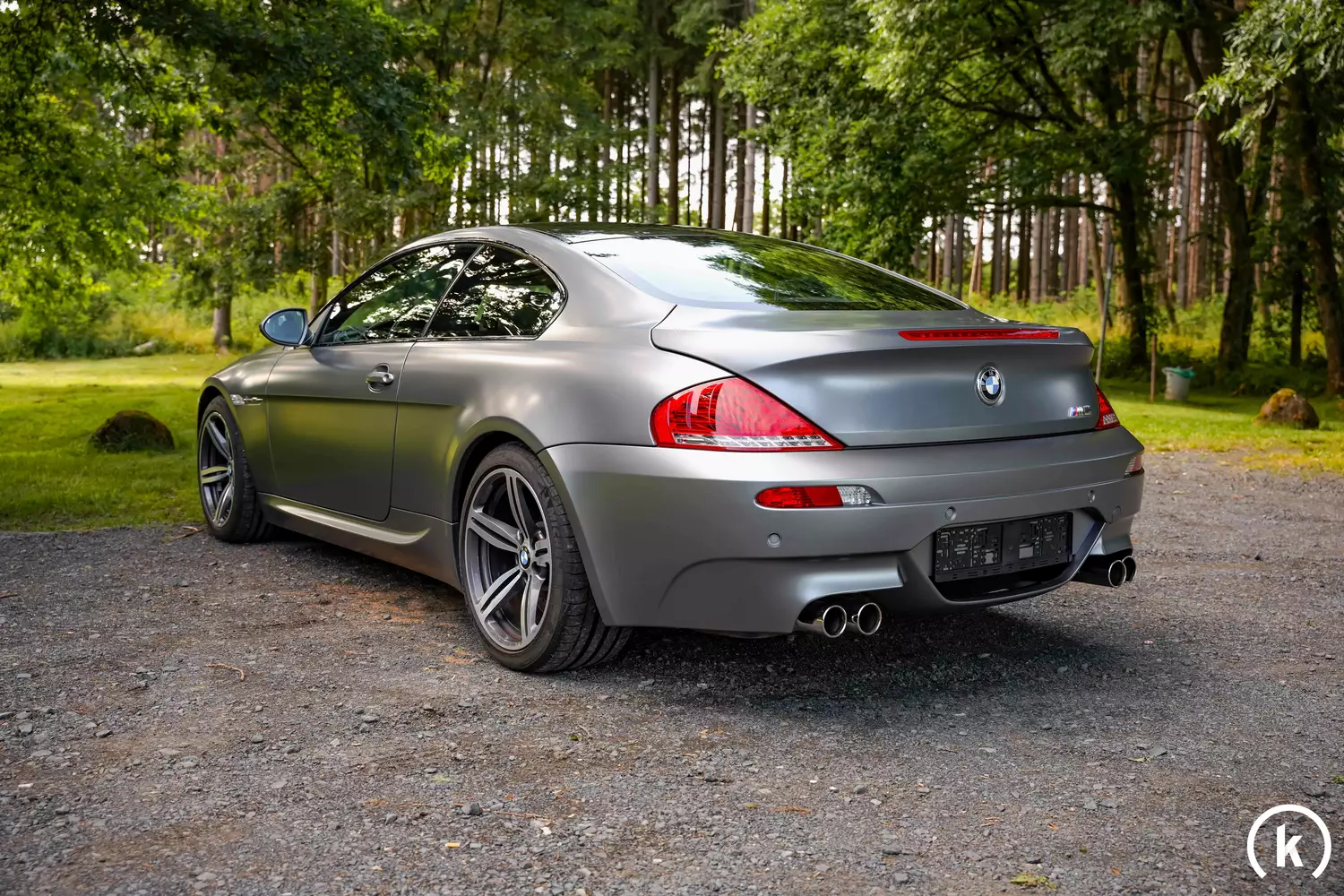 Sofort ins Auge bei diesem M6 Sondermodell fällt die Individual-Metalliclackierung namens „Frozen Grey Metallic“: Nachlackierungen sind laut Verkäuferangaben bisweilen noch keine getätigt worden, die Mattlackierung befindet sich in einem einwandfreien Erhaltungszustand. Es wurden keine Nachlackierungen vorgenommen. Auch sämtliche Anbauteile des M6 Competition Limited Edition wie z.B. die Motorhaube mit Lichtkanten und Carbondach zeigen sich in sehr guter Verfassung. Als Wehrmutstropfen sind einerseits ein kleiner Kratzer unterhalb der Stoßstange, andererseits eine kleine Schramme im Schweller zu nennen. Markant am Heck schauen die 4 Auspuffendrohre heraus, welche für eine gute Soundkulisse sorgen.