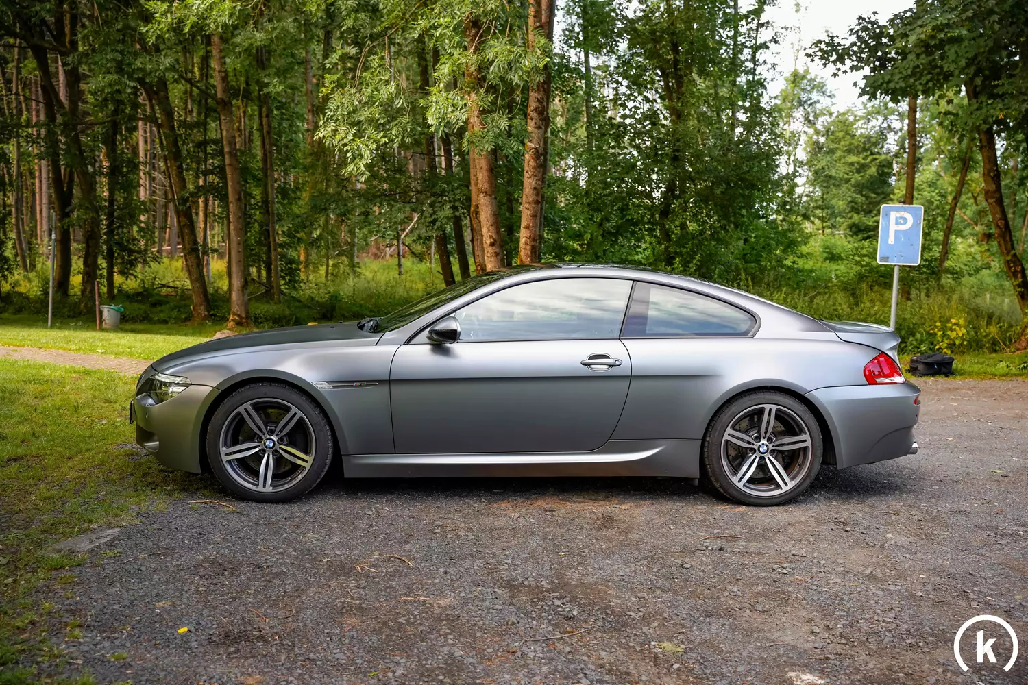 Sofort ins Auge bei diesem M6 Sondermodell fällt die Individual-Metalliclackierung namens „Frozen Grey Metallic“: Nachlackierungen sind laut Verkäuferangaben bisweilen noch keine getätigt worden, die Mattlackierung befindet sich in einem einwandfreien Erhaltungszustand. Es wurden keine Nachlackierungen vorgenommen. Auch sämtliche Anbauteile des M6 Competition Limited Edition wie z.B. die Motorhaube mit Lichtkanten und Carbondach zeigen sich in sehr guter Verfassung. Als Wehrmutstropfen sind einerseits ein kleiner Kratzer unterhalb der Stoßstange, andererseits eine kleine Schramme im Schweller zu nennen. Markant am Heck schauen die 4 Auspuffendrohre heraus, welche für eine gute Soundkulisse sorgen.