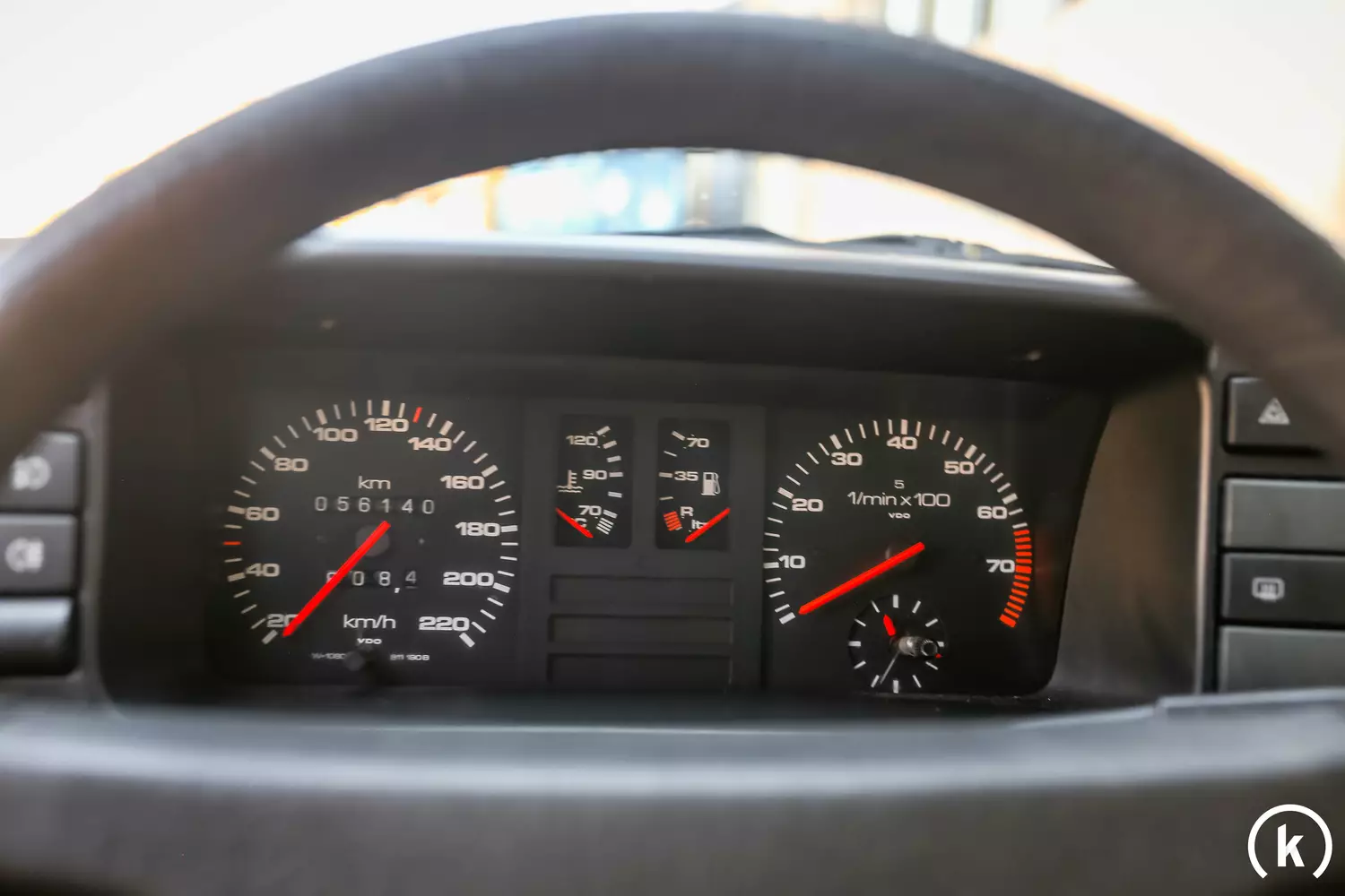 Das Fahrzeug hat laut Tachoanzeige insgesamt 56.000 Kilometer zurückgelegt, was durch TÜV-Berichte und Inspektions-Protokolle nachvollziehbar belegt ist. Alle Instrumente im Cockpit funktionieren tadellos, so dass an der Fahrtüchtigkeit des Audi 90 kein Zweifel besteht.