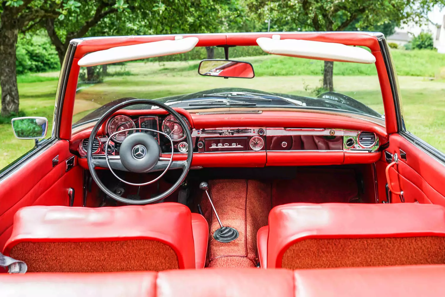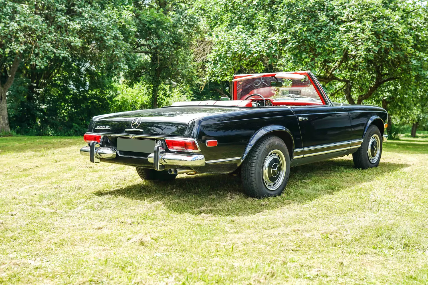 Viele Hersteller haben ihre legendären Kult-Klassiker. Citroën hat seine Göttin, die DS, Volkswagen hat den Käfer, Renault den R4, Ford den Mustang. Was das angeht, da kann „der Daimler“ aus dem Vollen schöpfen und kann gleich einige dieser Legenden vorzeigen. Eine davon ist unzweifelhaft die „Pagode“, der W113. Lieferbar war der W113 in drei Modellreihen, die aber nicht parallel angeboten wurden, sondern sich nacheinander ablösten. Von 1963 bis 1967 war er als 230SL erhältlich, 1967 als 250SL und von 1968 bis 1971 als 280SL. Ein ganz besonderes Modell bot Mercedes-Benz mit dem Namen „California“ an, in der Preisliste wurde diese Ausführung für 632 Extra-DM offiziell als „Coupé mit Hardtop ohne Verdeck und Verdeckkasten, dafür mit Fondsitzbank (Kalifofrnien-Ausführung)“ gelistet. Und genau so ein besonderes Modell steht hier zum Verkauf.