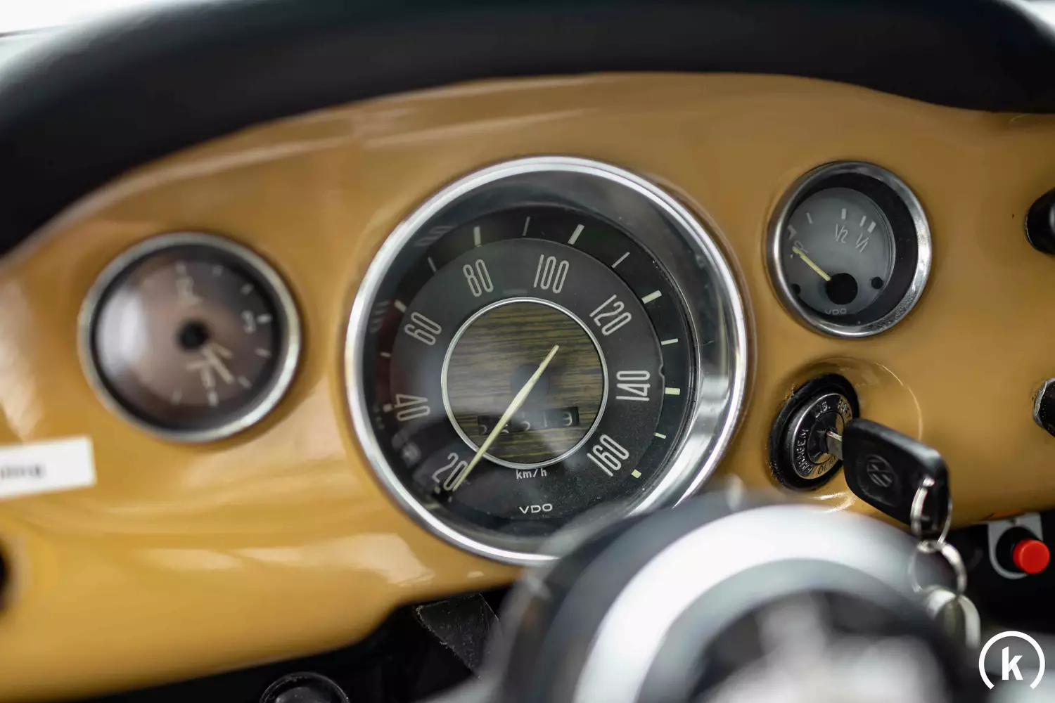 Knapp 25.220 Kilometer stehen laut Verkäuferangaben auf dem fünfstelligen Tachometer. Über diverse aufgehobene Inspektionsberichte kann die Historie des Karmann-Ghia teilweise zurückverfolgt werden. Ausfälle in der Instrumentierung des VW sind nicht zu beklagen.