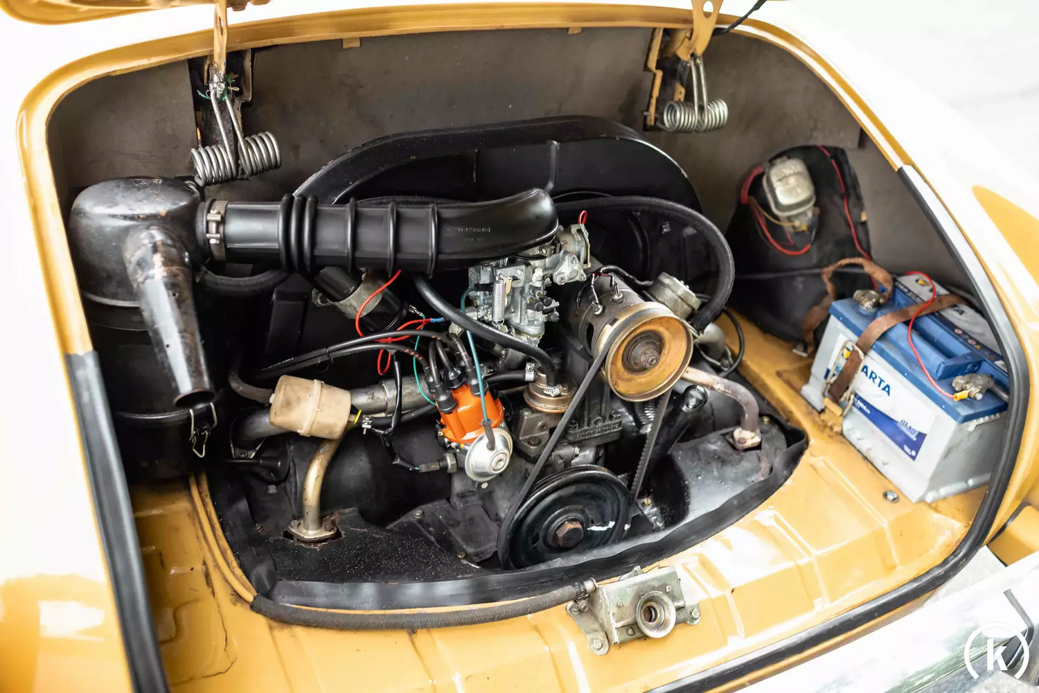 Für 48 PS Leistung sorgt der originale 1,6-Liter Vierzylinder-Boxermotor – geschaltet wird über das originale 4-Gang Handschaltgetriebe. Der jetzige Besitzer teilte uns mit, dass 2022 letzte Servicearbeiten sowie eine allgemeine Durchsicht stattfanden. Anstehende Arbeiten liegen aufgrund des guten technischen Zustands keine vor.