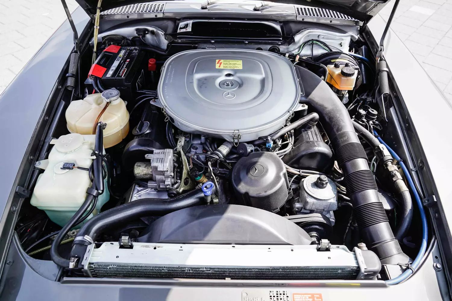 Für viele hartgesottene Fans ist der R107, bzw. die Coupéversion C107, das schönste Sportmodell vom „Daimler“. Nun gut, über Geschmack lässt sich trefflich streiten, aber eins ist unstrittig. Die Baureihe 107 prägte seit 1971 das Design einiger Generationen der S-, E- und C-Klasse. Sogar der Kult-Benz /8 kam am Ende seines Lebens noch in den Genuss der Entwicklungen, wie große Außenspiegel und geriffelte Rückleuchten, die weit weniger verschmutzen als glatte Exemplare. Ebenso unstrittig ist, dass der hier angebotene R107 (das R steht übrigens für Roadster) ein wirklich schönes Exemplar ist. Es handelt sich um das Modell 500SL. Er wurde 1985 erstmals in Deutschland zugelassen, verbrachte aber die letzten Jahre auf den kanarischen Inseln.