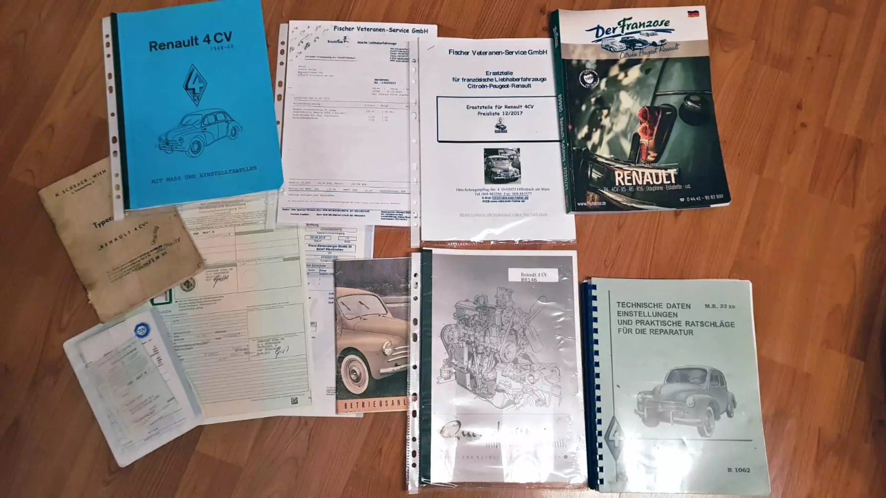 Der Renault 4CV wurde ab dem Jahr 1942, im noch deutsch besetzten Frankreich, im Geheimen entwickelt. Schon im November 1945 konnte, unter der Leitung von Fernand Piccard und Charles Edmond Serre, die Erprobungen des Prototypen erfolgen. Dieser hatte nur zwei Türen und ähnelte, durch die runde Front, noch stark dem Käfer von Volkswagen Am 3. Oktober 1946 erfolgte dann die Prämiere auf dem ersten Pariser Automobilsalon der Nachkriegszeit. Das Publikum war zunächst eher irritiert vom neuen Modell, da es so gar nichts mit dem Luxus und der Eleganz gemeinsam hatte, für die Renault vor 1940 bekannt war. Durch seine blassgelbe Lackierung wurde das Modell von der Öffentlichkeit "La Motte de Beurre" (der kleine Butterklumpen) getauft, was die Deutschen später mit "Cremeschnittchen" übersetzten. Die Bezeichnung 4CV bezieht sich wie beim Citroën 2CV auf die französische Steuerklassifizierung "CV".