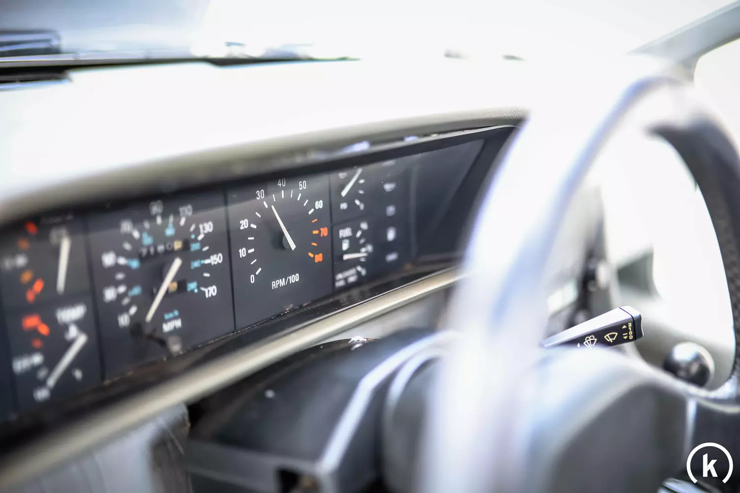 Üppig ist das Infoangebot, welches das Cockpit des DeLorean für den Fahrer bereithält: Im Tachometer ist eine Laufleistung von 37.150 Meilen abzulesen, was umgerechnet einem Kilometerstand von knapp 59.790 entspricht. Über verschiedene Dokumente wie ehemalige Rechnungen und frühere Inspektionsberichte kann die Geschichte sowie die Laufleistung dieses DMC-12 laut Verkäuferangaben belegt werden. Alle Instrumente im Innenraum funktionieren einwandfrei.