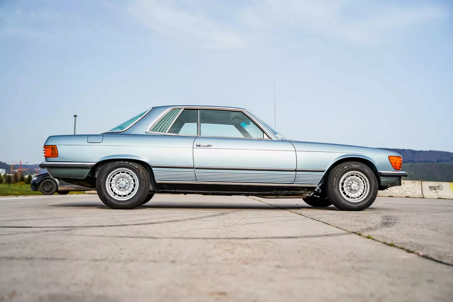 Abgeleitet vom zeitlos wirkenden SL der Mercedes-Benz Baureihe R 107 kam 1971 das mit sehr ähnlicher Silhouette versehene Coupé SLC (C 107). Im Vergleich zum Roadster verfügte das Coupé über einen längeren Radstand und entsprechend mehr Außenlänge – und war etwas teurer im Anschaffungspreis als der Roadster. Da damals bei Mercedes-Benz kein Coupé auf S-Klasse Basis angeboten wurde, füllte der SLC diese Lücke. Den SLC gab es (bis auf den 420 und 560) mit dem kompletten Motorenprogramm des SL: als 280, 350, 380, 450 und 450 5.0 und 500 SLC. Die meisten Exemplare der Baureihe entfielen auf den 450 SLC (knapp 32.000 produzierte Einheiten). Vom 350 SLC wurden insgesamt ca. nur 14.000 Stück gebaut.